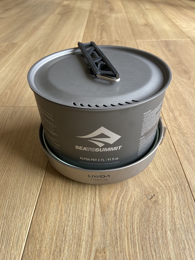 Cette popote en aluminium anodisé Sea To Summit permet d’accueillir environ 2l d’eau, ce qui est suffisant pour un repas de 4 personnes. Elle pèse environ 270g. Elle dispose d’un manche rétractable pour à la fois occuper moins de place et verrouiller le couvercle en place pendant le transport. Le couvercle comporte des trous servant à l’évacuation de l’eau afin d’égoutter des pates ou du riz en fin de cuisson.